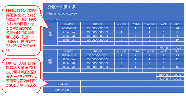 介護業界では「人事制度が形骸化している」「評価に納得感がない」といった課題が多く見られます。